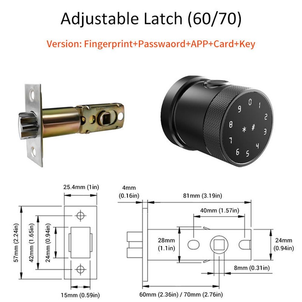 | App Name | Tuya App Or TTLock App (choose One) | Unlock Method | APP, Fingerprint, Card, Password, Wristban, Mechanical Key |